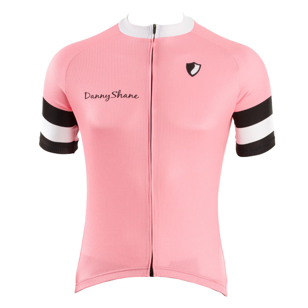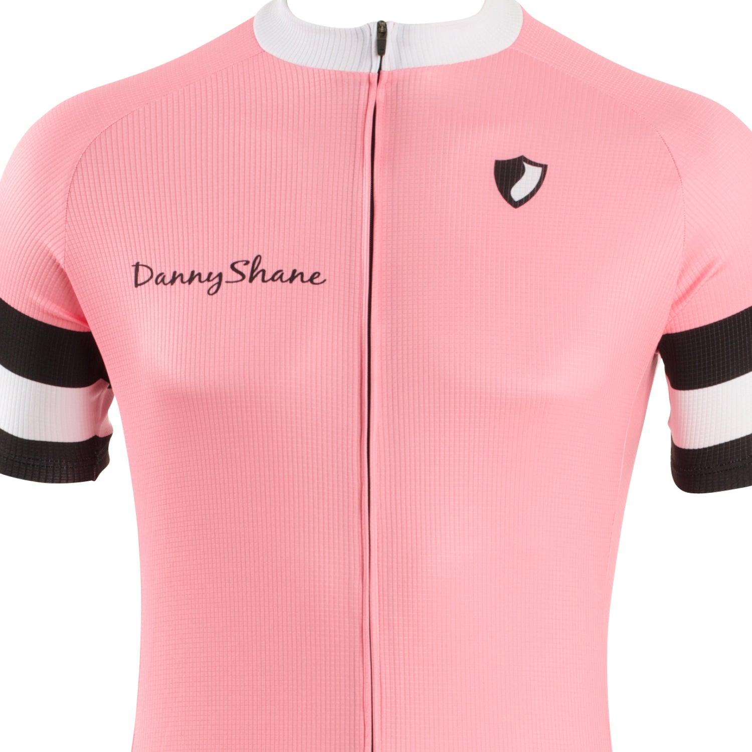 DannyShane retrospective products combine classic styles from the past with modern fabric and sportswear technology. Our retrospective apparel is meant to stand out, with rich colors and distinctive patterns that convey a classic European look. The Berkley Cycling Jersey features a simple design in soft pink, and the extra wide bands across the sleeves give it a racey look.